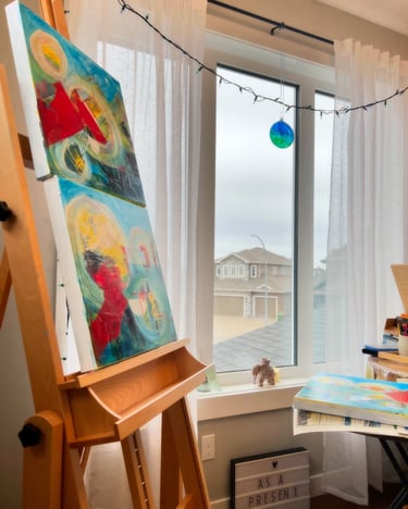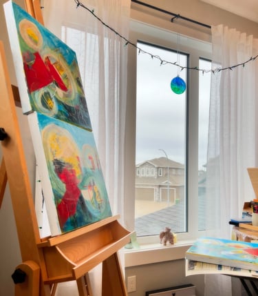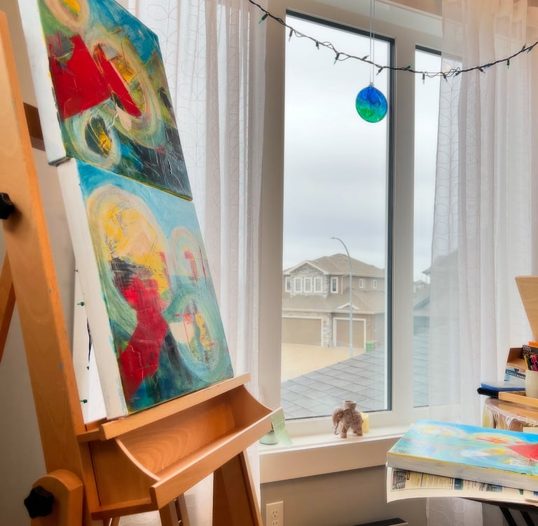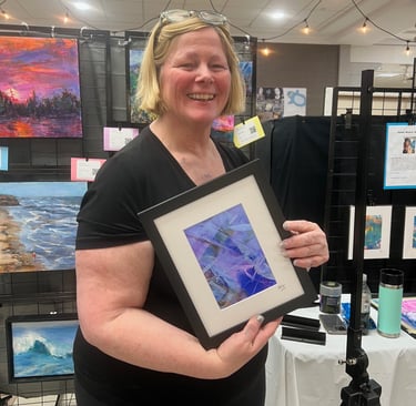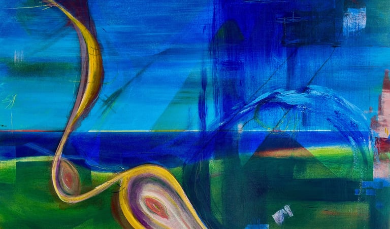 Anne Marie Szucs is an emerging abstract artist working in acrylic. Her inspirations are nature, colour, and the flow of energy around us all. She starts her work with the feel of "alla prima" but then adds layers of textures and colours in later stages to celebrate the image she sees - either based on plein air, photos, preliminary sketches, or purely from her imagination. Her colour palette is vibrant and expressionistic, and her works express her joy in the freedom of creativity.