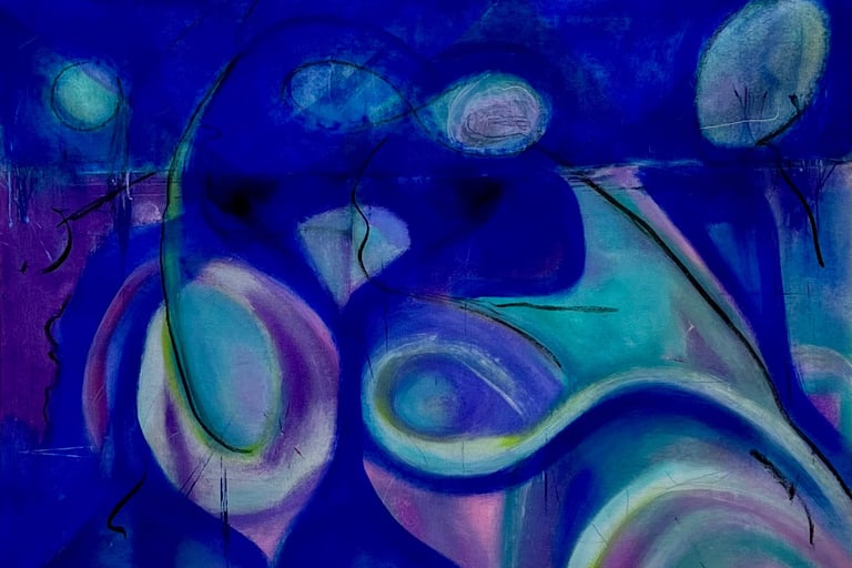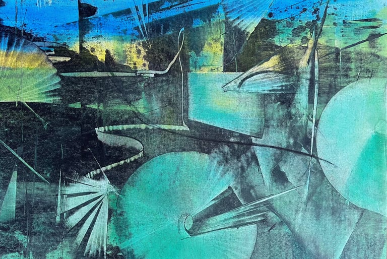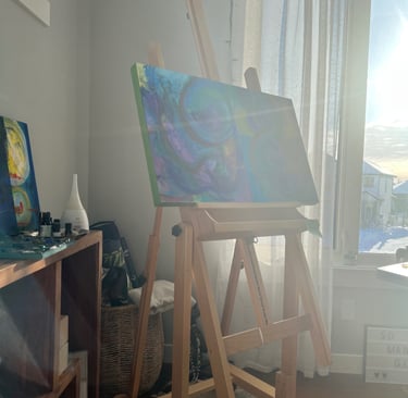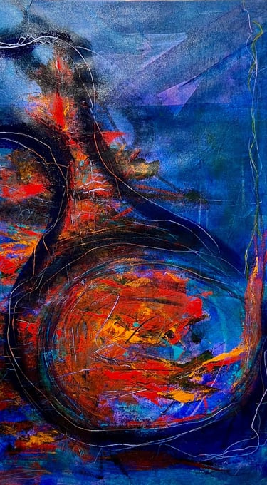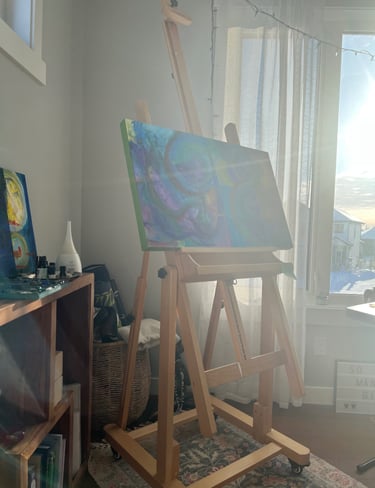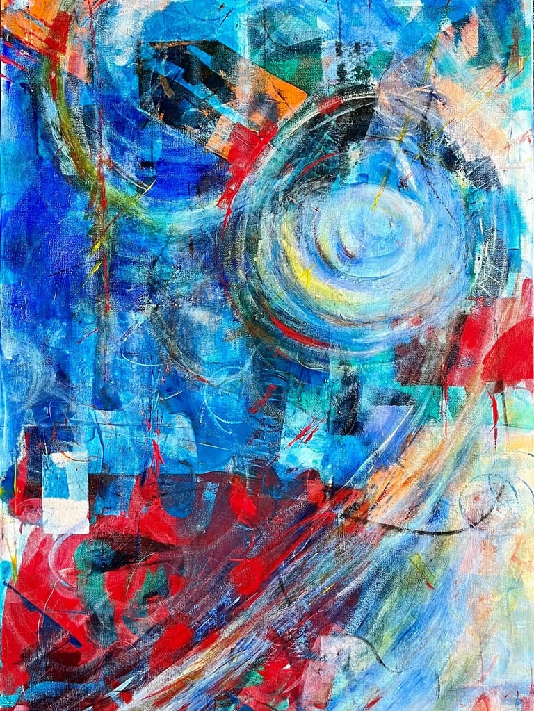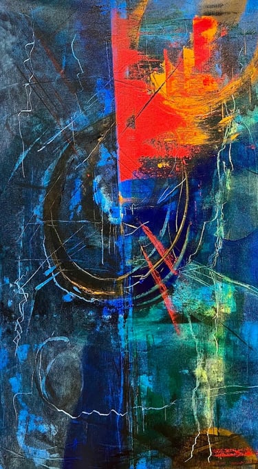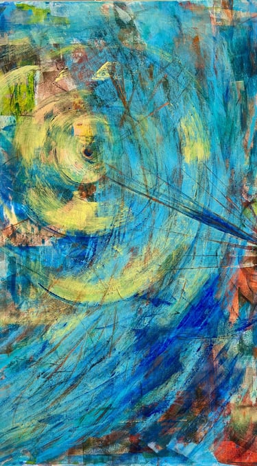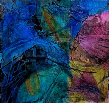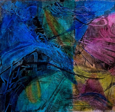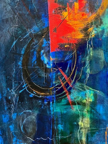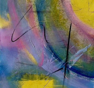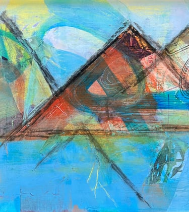 Working predominantly with acrylic open paint, my tools of choice are palette knives, squeegees, and other mark-making tools. Most of my abstract painting is intuitive where images and ideas emerge as I work. I like to mix things up as well, especially with landscape abstracts, where I am sometimes more intentional and start with a direction for my piece. I love to work in series - allowing ideas and paint to flow over several substrates at once. I always work in layers, adding and subtracting details, until the final painting emerges.